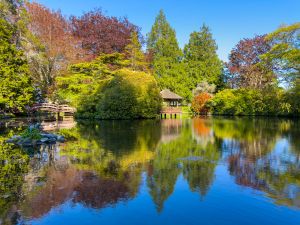 Hidden behind Kelowna City Hall, Kasugai Gardens is a tranquil Japanese-style garden that bursts with colour in the fall.